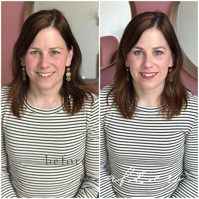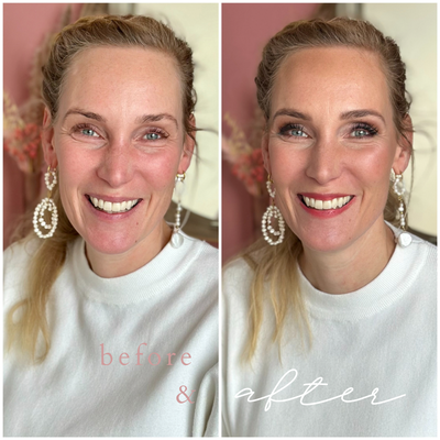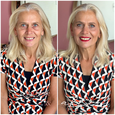Ik maak eerst de helft van je gezicht op en leg je stap voor stap uit welke technieken, kleuren en producten ik gebruik, zodat je zelf kunt zien welk effect ze op jou hebben. Vervolgens doe ik ook de andere helft, zodat je alles nog een keer hoort en ziet. Zodat je dit thuis zelf gemakkelijk kunt voortzetten.